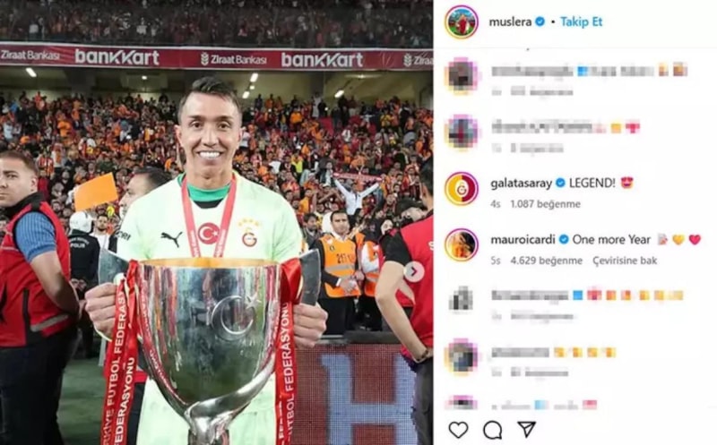 Icardi, sosyal medya hesabından Fernando Muslera'ya bir yıl daha Galatasaray'da kalması için mesaj attı.