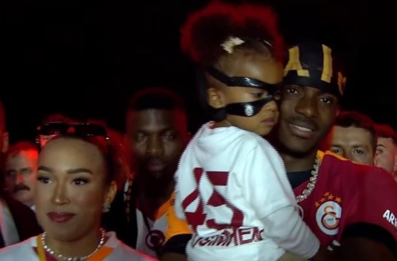 Victor Osimhen, Galatasaray'ın şampiyonluk kutlamasında sahneye 'Yarim yarim'i şarkısıyla çıktı. Taraftarların ardından futbolcular ve Okan Buruk da 'Bizimle kal Osimhen' dedi.
