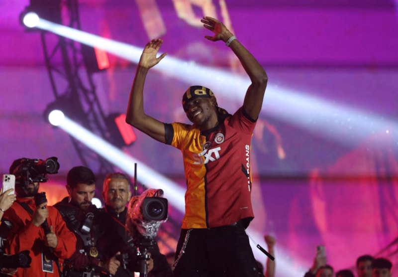 Nijeryalı golcünün sahneye çıkışıyla birlikte sarı-kırmızılı taraftarlar hep bir ağızdan 'Bizimle kal Osimhen' diye bağırdı.