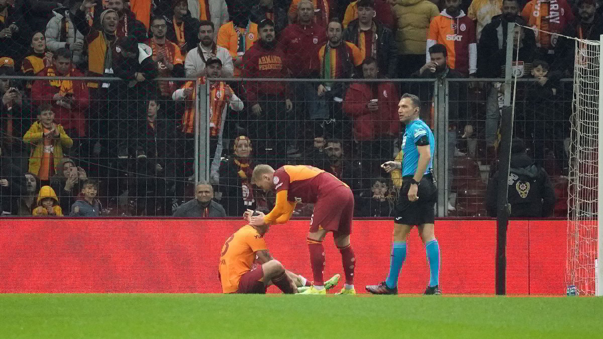 Galatasaray sağlık ekibinin tedavisinin ardından kendini deneyen Kaan, 19. dakikada kendini yere bıraktı ve oyuna devam edemedi.