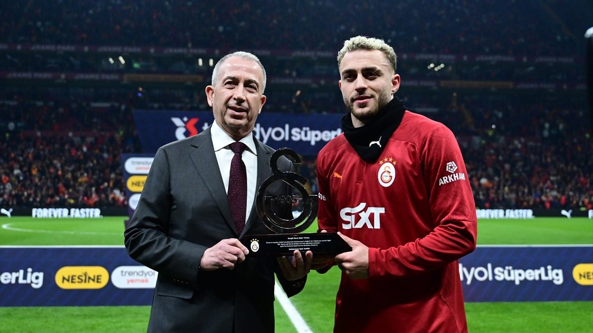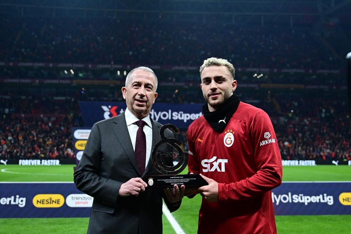 Karşılaşma öncesi Barış Alper Yılmaz, kendisine özel olarak hazırlanan plaket ve formayı Galatasaray İkinci Başkanı Metin Öztürk tarafından aldı.