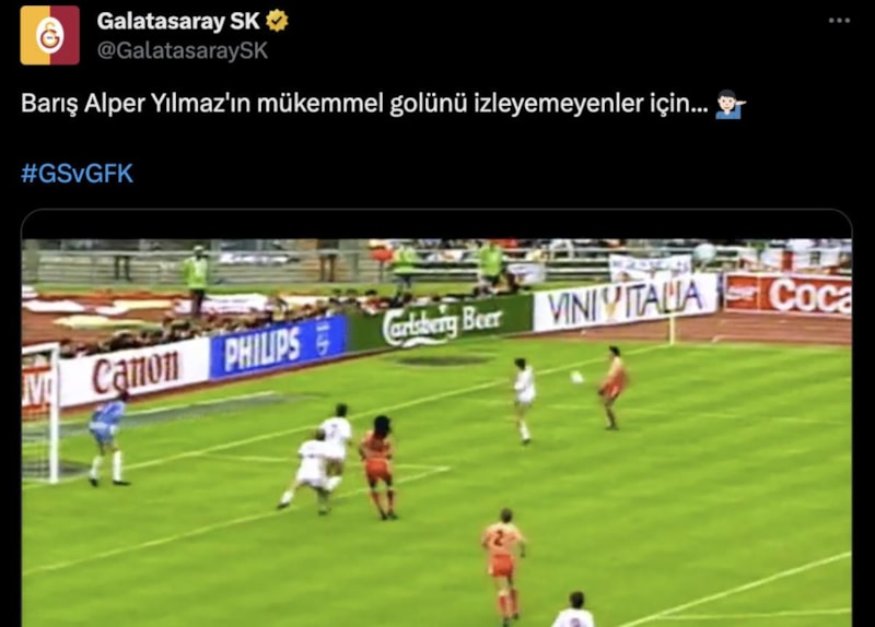 Barış Alper Yılmaz'ın Gaziantep FK karşısında attığı golün ardından Galatasaray'ın sosyal medya hesaplarından Marco van Basten'in 1988 Avrupa Futbol Şampiyonası'nda attığı gol paylaşıldı.