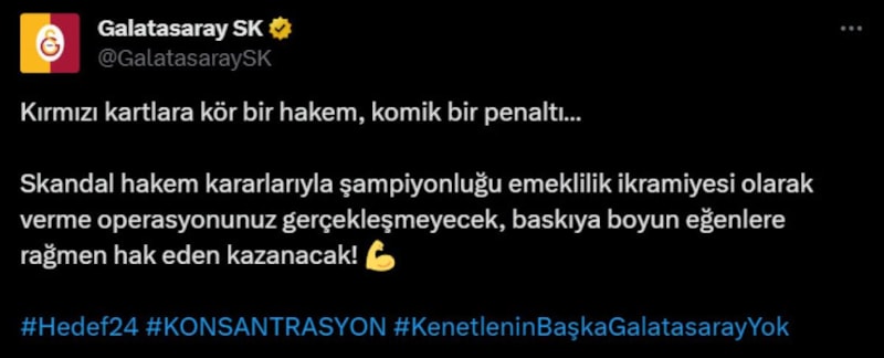 Galatasaray Kulübü, bu müsabakanın ardından hakem yönetimi hakkında bir paylaşımda bulundu.