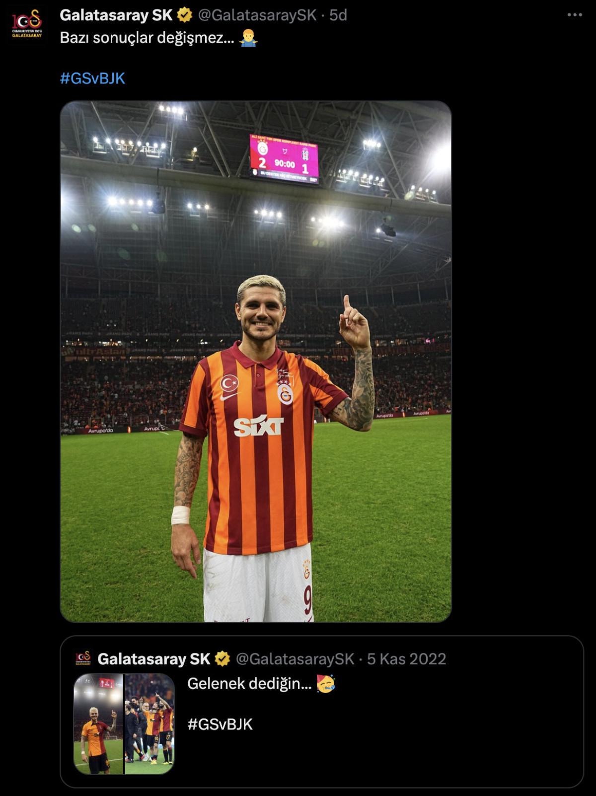 Galatasaray Kulübü ise sosyal medya hesabından Beşiktaş'a gönderme üstüne gönderme yaptı.