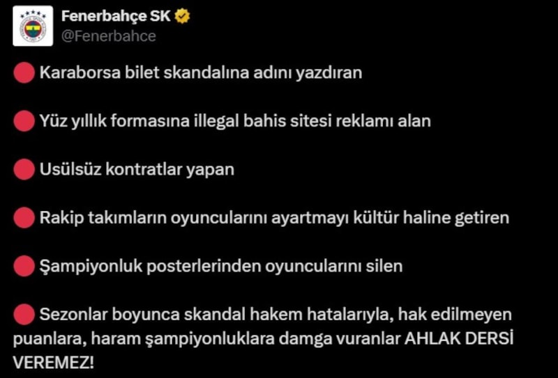 - Sezonlar boyunca skandal hakem hatalarıyla, hak edilmeyen puanlara, haram şampiyonluklara damga vuranlar ahlak dersi veremez!