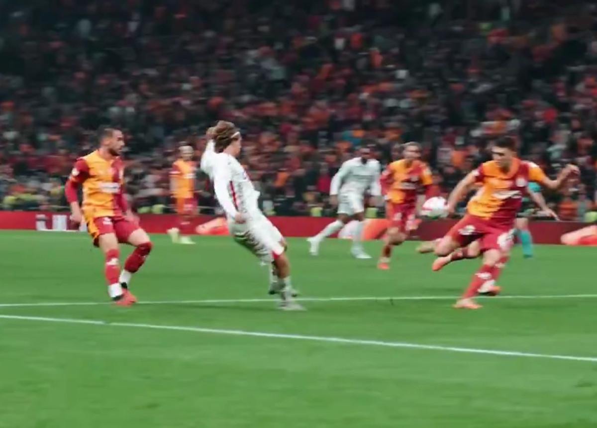 Galatasaray'ın hakeme olan tepkisine sosyal medyadan aynı tarzda cevap veren Samsunspor, Galatasaray'ın sol beki Kazımcan Karataş'ın müdahalesini "Bu da mı penaltı değil?!" notuyla paylaştı.