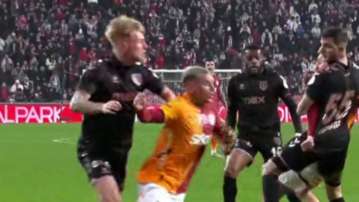 Galatasaray'da Lucas Torreira, karşılaşmanın 19. dakikasında rakip ceza sahasında yerde kaldı ve hakem Ozan Ergün'e baktı.