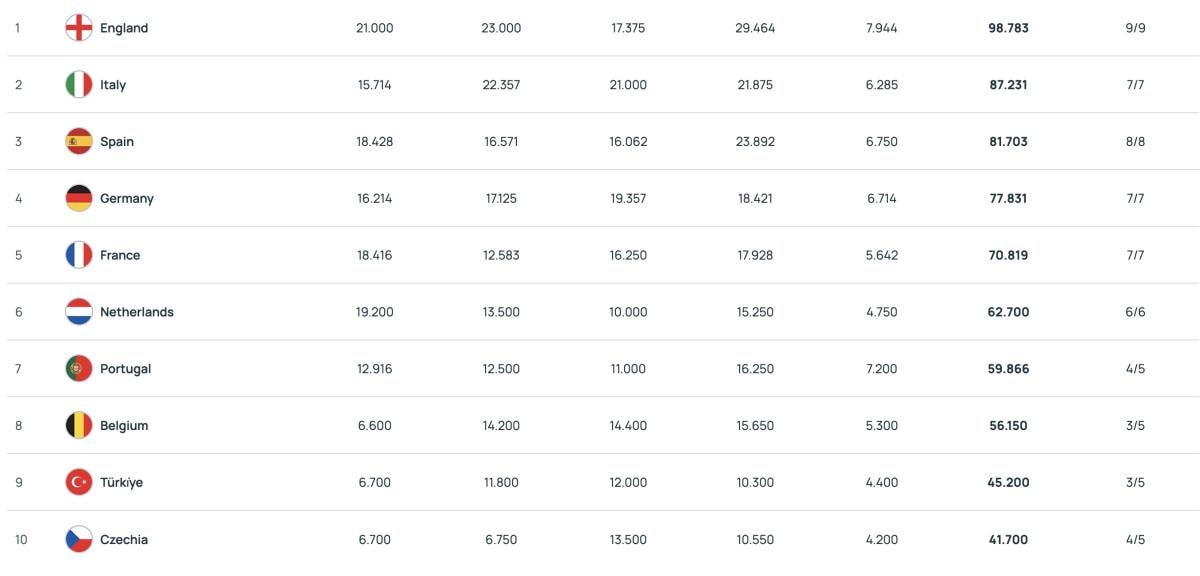 - Bu galibiyetle Türkiye, UEFA ülkeler sıralamasındaki 9. sıradaki yerini korudu.