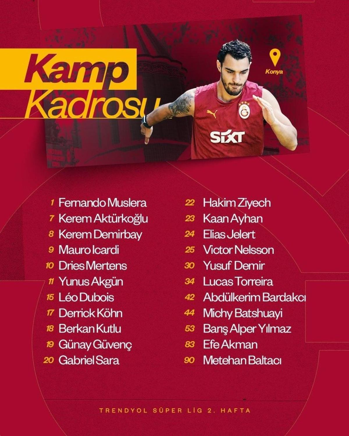 Galatasaray, Süper Lig’in 2. haftasında deplasmanda Konyaspor ile karşılaşacak. Sarı-kırmızılı kulüp, bu önemli mücadele için Konya’ya uçtu.