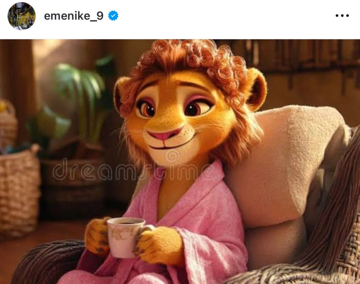 Galatasaray'ın kritik puan kaybından sonra Emenike'nin paylaşımında kedi görünümlü bir aslanın pembe bornozla oturduğu bir görsel yer aldı.