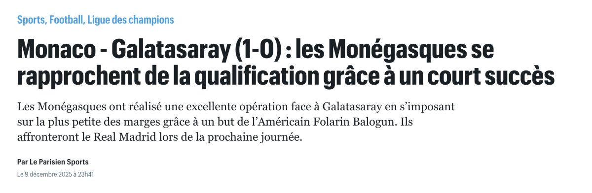 "Monaco'nun zaferi şüphesiz ki son ana kadar süren etkileyici bir takım çalışmasının sonucuydu, ancak iki saha oyuncusu öne çıktı: Akliouche ve Minamino. Bu akşam Galatasaray'da öne çıkan tek oyuncu varsa, o da Leroy Sane'ydi. Alman forvet, tehdit oluşturan tek isimdi."