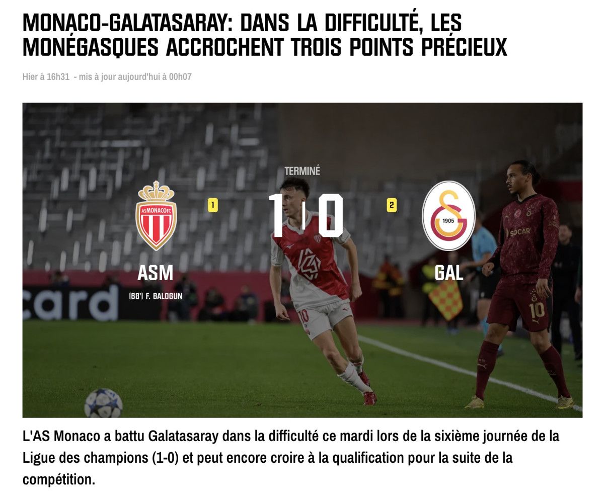 Galatasaray'ın Monaco deplasmanındaki mağlubiyeti sonrası Fransa basınında gündem sarı-kırmızılılara çevrildi.