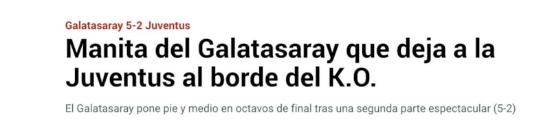 "Galatasaray'ın 5'lik darbesi Juventus'u nakavtın eşiğine getirdi. Harika bir ikinci yarı sonrası G.Saray son 16 kapısını sonuna kadar açtı."