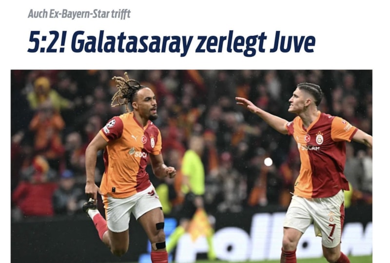 Galatasaray'ın 5-2 mağlup ettiği karşılaşma, Avrupa basınında geniş yer buldu.