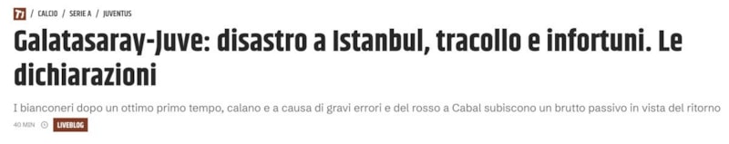 "Galatasaray korkutucu bir takım. Şimdi uzatma dakikaları başladı ve Juve bunun mümkün olan en kısa sürede bitmesini umuyor."