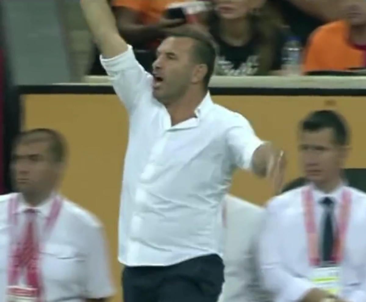 Hakem Atilla Karaoğlan, oyunu devam ettirdi. Galatasaray Teknik Direktörü Okan Buruk ise karara büyük tepki gösterdi.