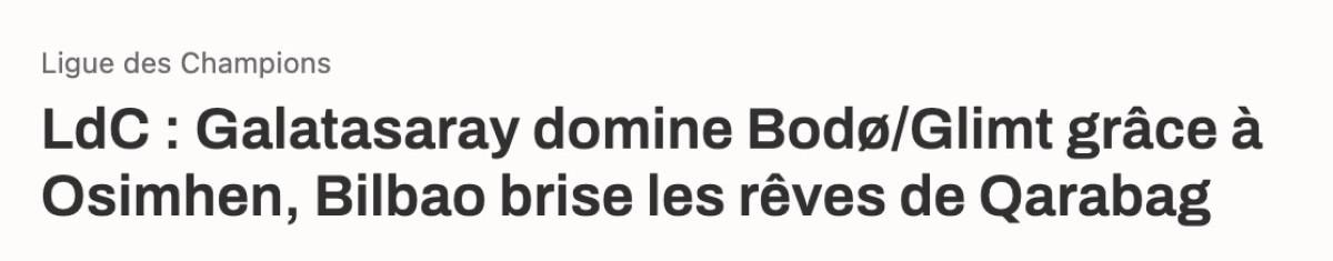 Fransa basınından Foot Mercato, "Şampiyonlar Ligi’nin ilk haftasında Frankfurt tarafından ezilen ancak 2. haftada Liverpool’a karşı tepki veren İstanbullular, bu kez Bodo/Glimt’i titremeden domine etti. Osimhen, çoğu zaman olduğu gibi takımına yolu göstermek için ateşi yaktı. Nijeryalı mücadeleyi 4 veya 5 gol ile tamamlayabilirdi." ifadelerine yer verdi.