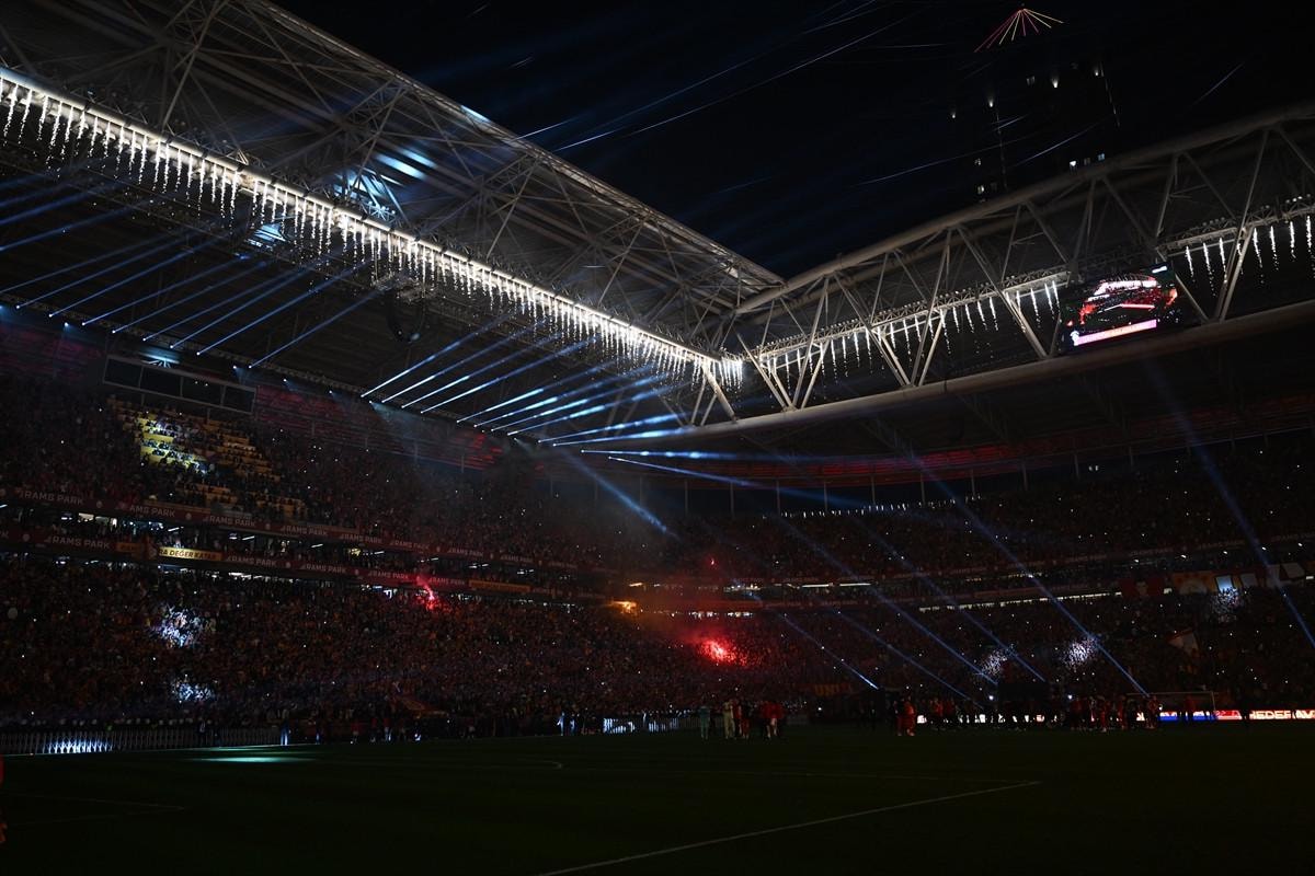 Son olarak ise stadın üzerinde de kırmızı renkte 25’inci şampiyonluğu simgeleyen büyük bir pankart açılırken, sarı-kırmızı havai fişeklerle görsel bir şölen oluşturuldu.