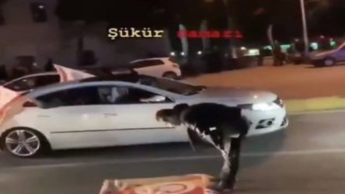 Yolun ortasına Galatasaray bayrağı seren bir taraftarın şükür namazı kıldığı görüldü.
