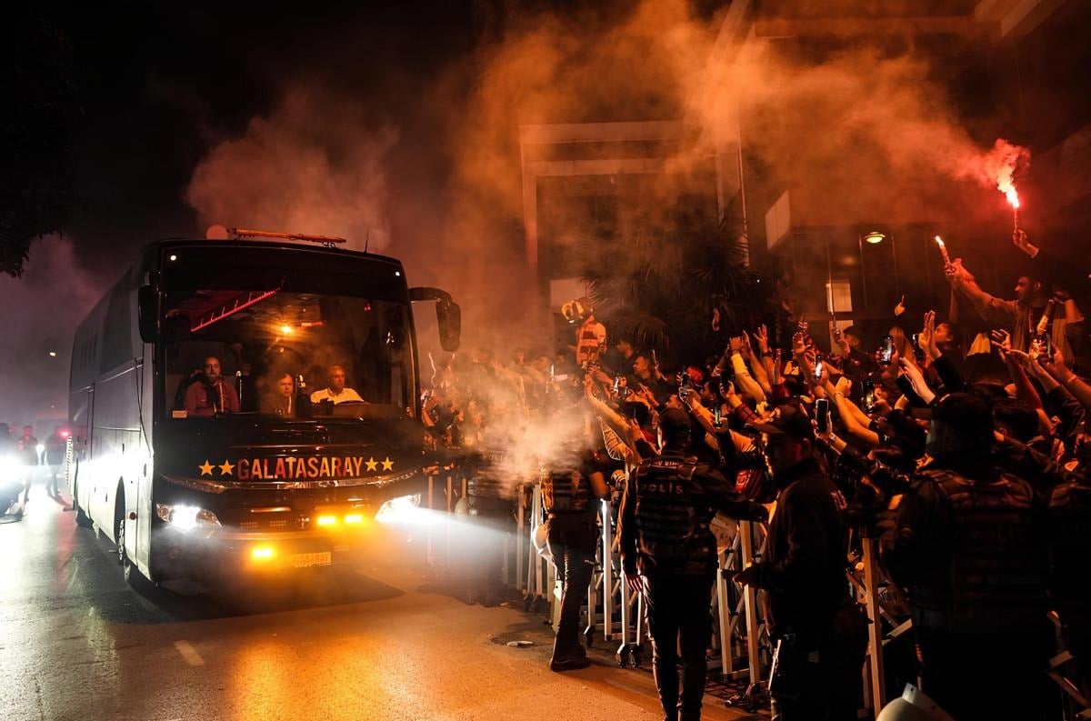 Taraftarlar, takımı marşlarla, meşalelerle ve bayraklarla karşılarken takım otobüsünün tesislere girmesinin ardından taraftarlar da alandan ayrıldı.