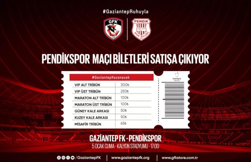 Geçtiğimiz hafta oynanan Gaziantep FK-Pendikspor karşılaşmasının bilet fiyatları ise dikkat çekiyor.