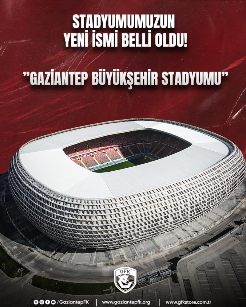 Süper Lig'de mücadele eden Gaziantep FK'nın maçlarını oynadığı stadın ismi "Gaziantep Büyükşehir Stadı" oldu.