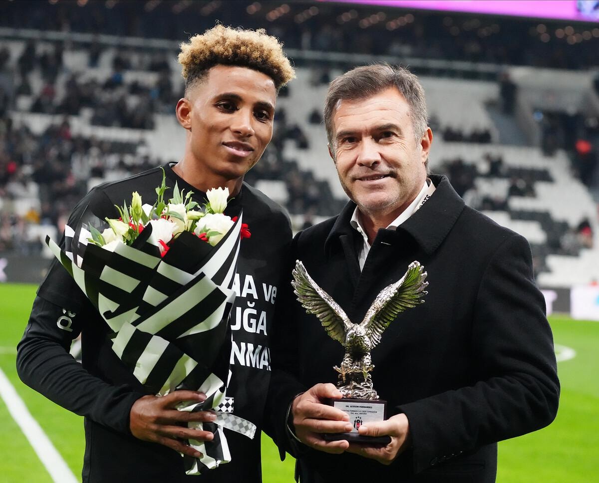 Siyah-beyazlı kulübün yönetim kurulu üyesi Feyyaz Uçar, Gedson Fernandes'e forma, plaket ve çiçek takdim etti.