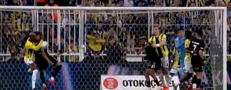 Dakikalar 34'ü gösterdiğinde Rashica'nın kullandığı kornerde İrfan Can Eğribayat'ın sektirdiği top, Talisca'nın koluna geldi.