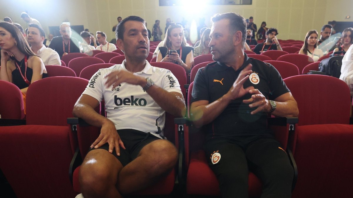 Galatasaray’dan teknik direktör Okan Buruk ve kaptan Fernando Muslera, Beşiktaş’tan ise teknik direktör Giovanni van Bronckhorst ve kaptan Necip Uysal, Süper Kupa maçı için ortak basın toplantısında açıklamalarda bulundu.