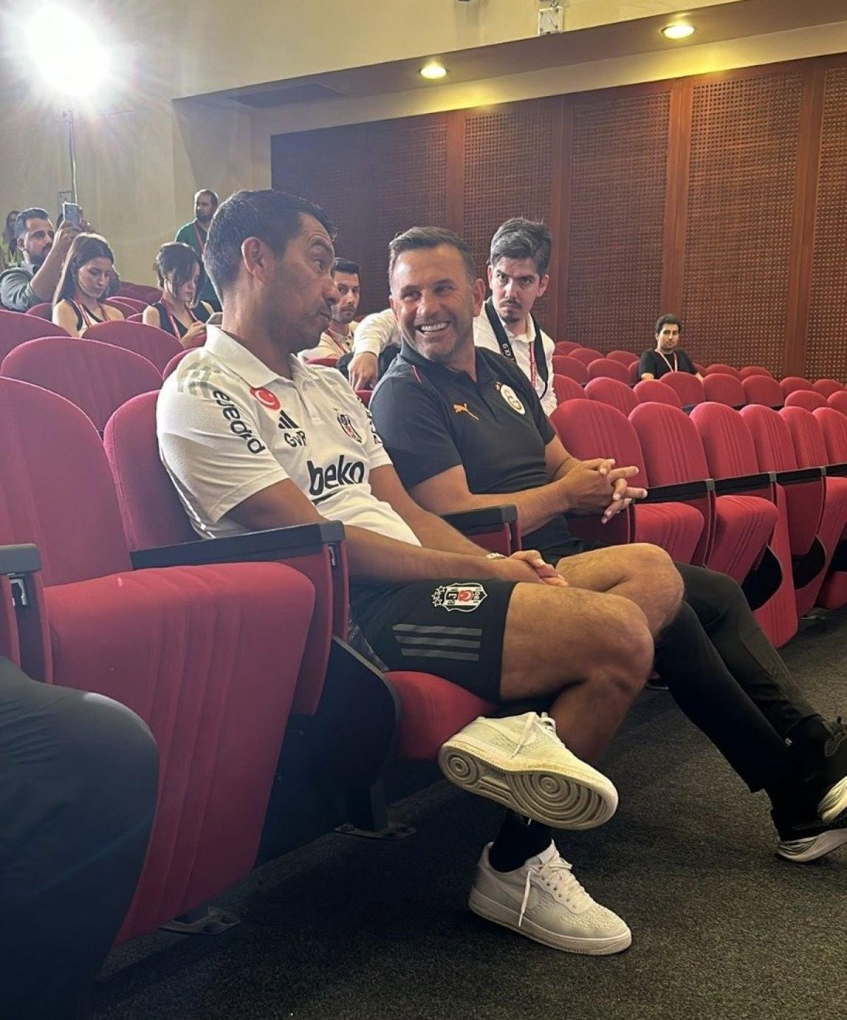 Toplantının en dikkat çeken anlarından biri, Giovanni van Bronckhorst’un Okan Buruk’a yaptığı esprili şakaydı.