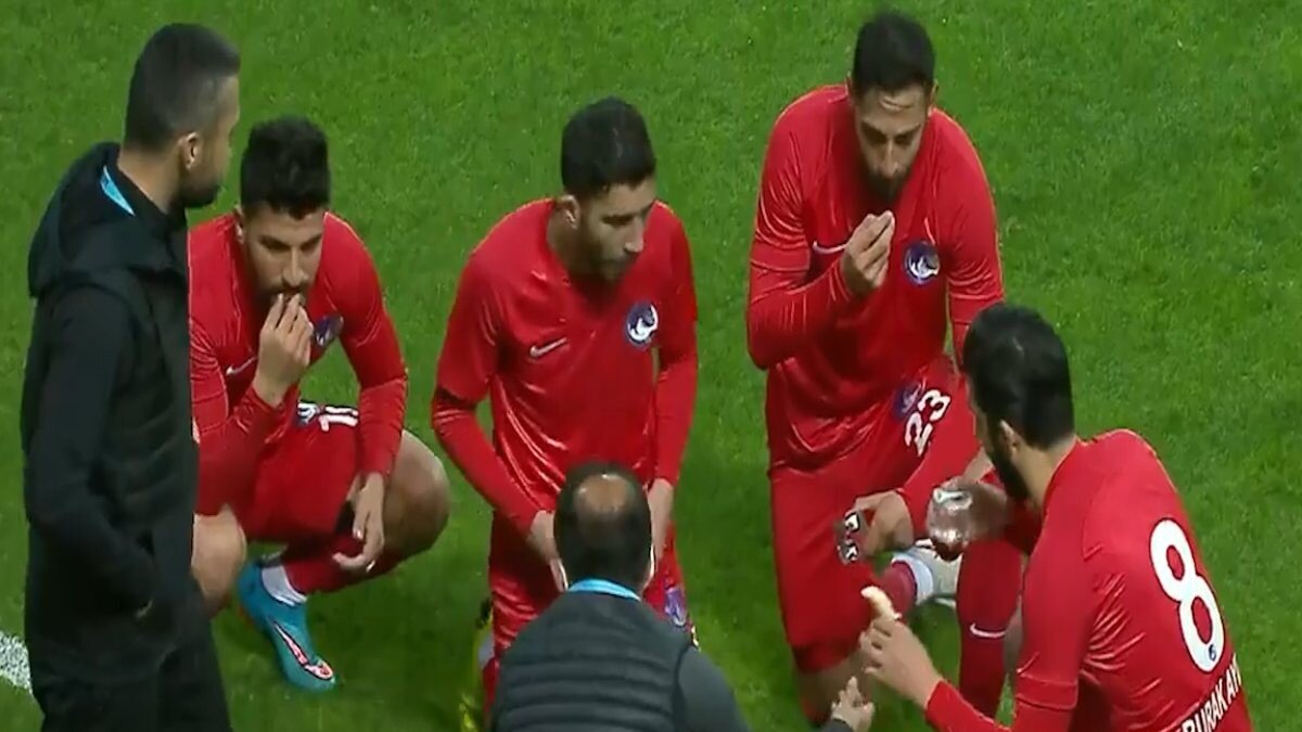 Mücadelede ezan saati ve maç içerisindeki bir sakatlık anının denk gelmesiyle futbolcular, oyunun durduğu bu anı saha kenarında oruçlarını açmak için kullandı.