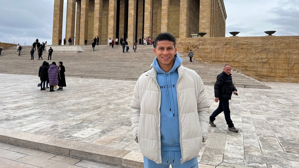 28 yaşındaki futbolcu, eşi ve çocuklarıyla birlikte Gazi Mustafa Kemal Atatürk'ün mezarının bulunduğu Anıtkabir'e giderek fotoğraf çektirdi.