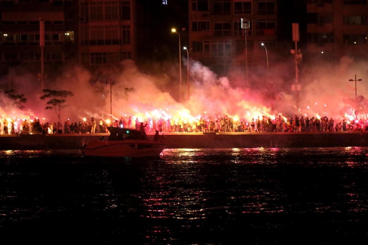 Sarı-kırmızılı renklere gönül veren taraftarlar saatler 19.25’i göstermesiyle birlikte Güzelyalı Sahili'nde toplanmaya başladı.