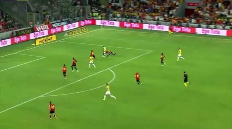Deniz Çoban: Hedefinde top var Maximin'in, topa da hafif dokunmuş. Dizini de kendisine doğru çekmeye de başlamış. Sarı kart yeterli diye düşünüyorum. Bu arada Maximin'in saçına taktığı bu aksesuarın da futbol kurallarına aykırı olduğunu söylememiz gerek. Arkasından kendisini çekebilirler, sağlığı açısından tehlikeli.