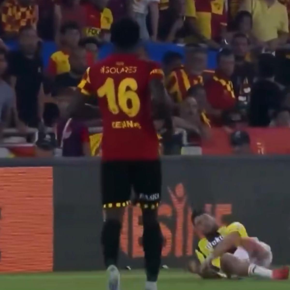 Ev sahibi Göztepe'nin 30. dakikada Romulo ile bulduğu gole Fenerbahçeli oyuncular itiraz etti. VAR'dan gelen uyarı sonrası gol iptal edildi.