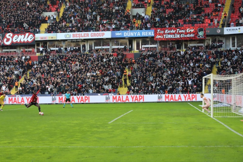 Gaziantep'te Muhammed Bayo, 65. dakikada kullandığı penaltıda topu dışarıya gönderdi.