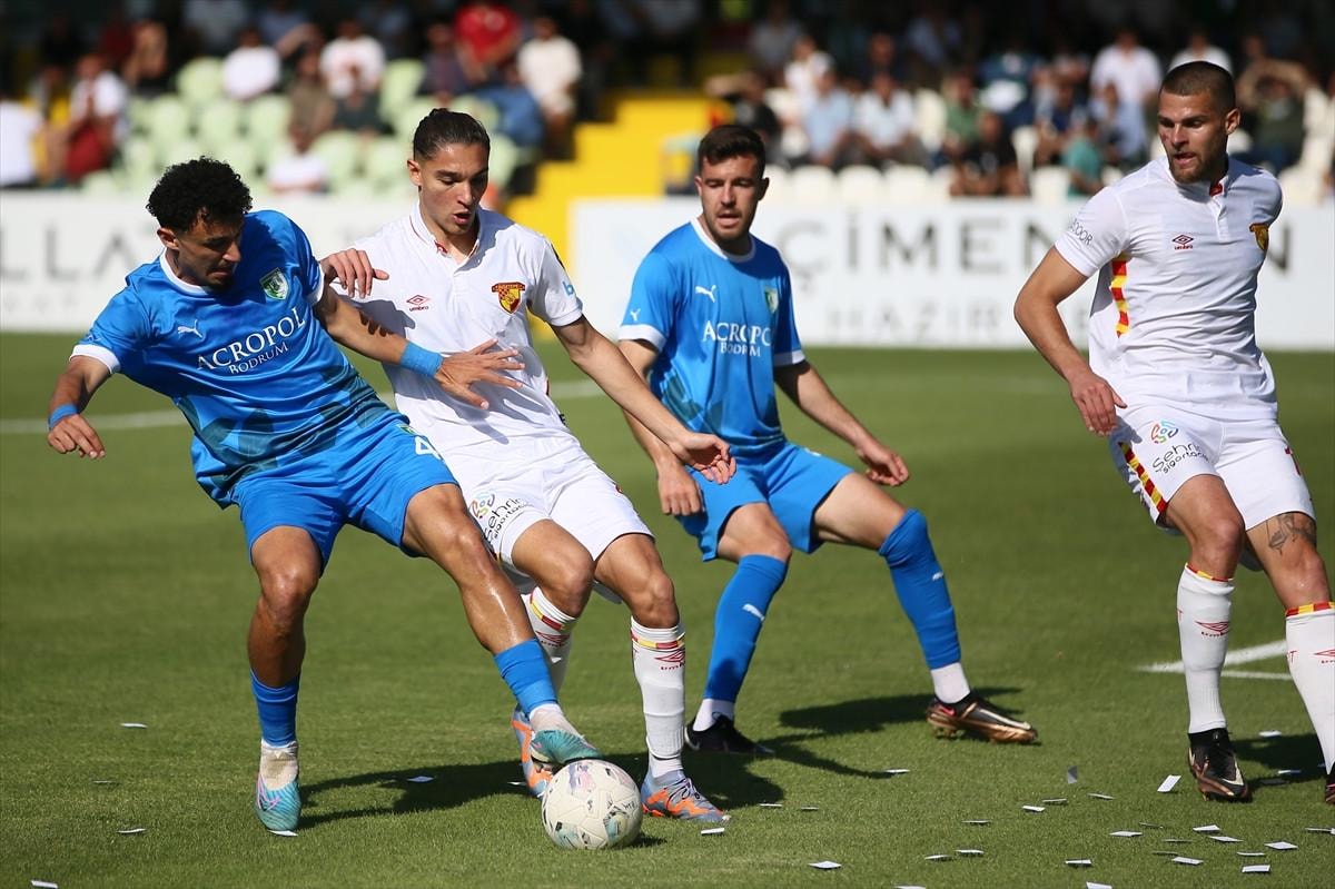1. Lig'de play-off turu ilk maçında İsmet Taşdemir yönetimindeki Bodrumspor ile Ekrem Dağ'ın ekibi Göztepe, Arda Kardeşler'in yönettiği maçta Bodrum İlçe Stadyumu'nda karşı karşıya geldi.