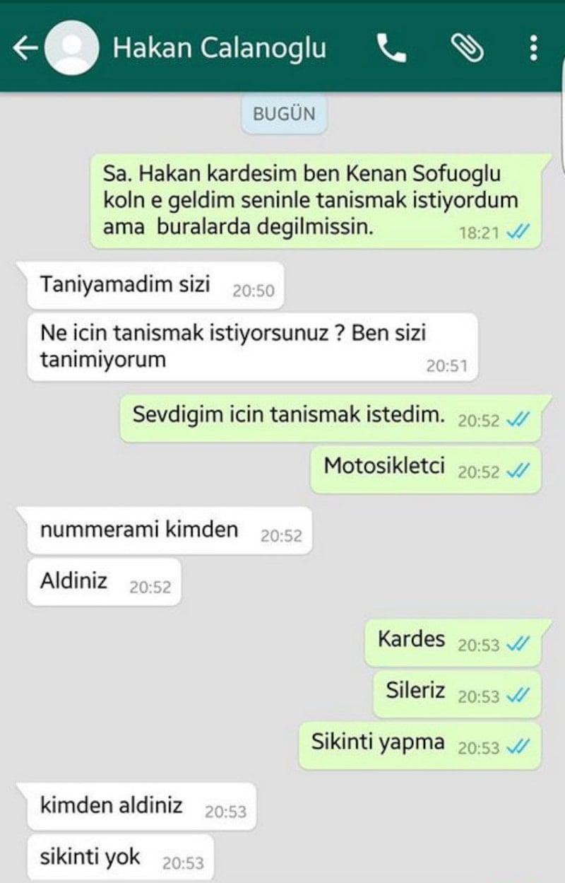 Eski milli motosikletçi Kenan Sofuoğlu ile milli futbolcu Hakan Çalhanoğlu arasında 2016 yılında geçen mesajlaşma, sosyal medyada yıllarca paylaşılmıştı.