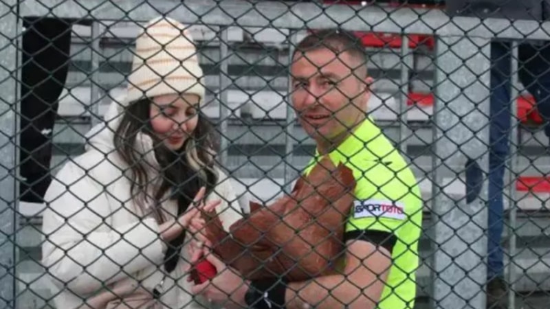 Hakem, burada diz çöküp sevgilisine evlilik teklifi etti.