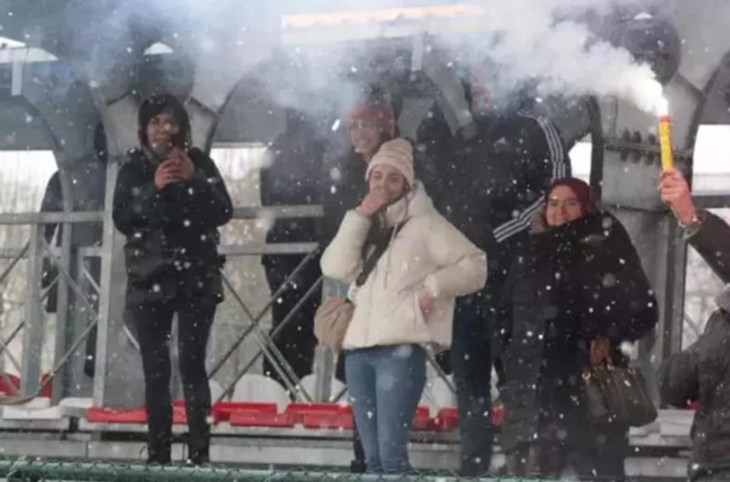 Maçın hakemi Özkan Elikaya da elinde çiçek ve yüzükle sahaya çıkarak tribünden kendisini izleyen kız arkadaşı Kübra Şengül’ün yanına gitti.