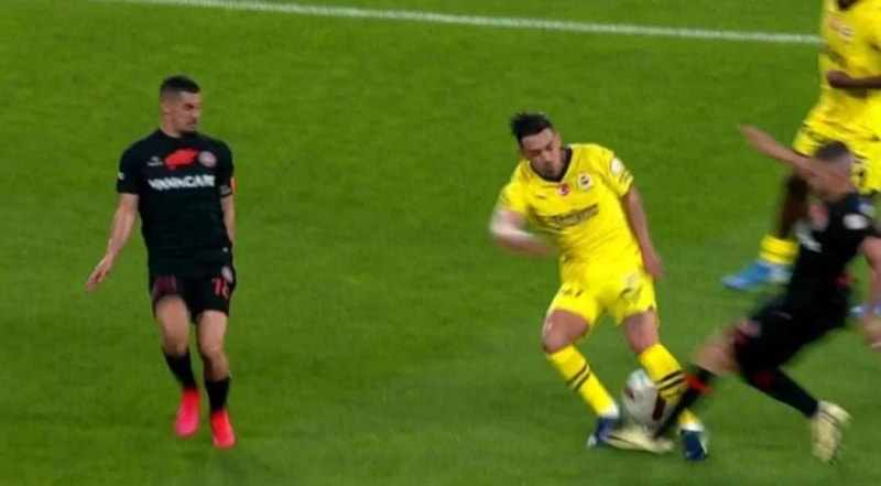 Eysseric çok dağınık girdiği için hakem yanıldı. Eysseric sol ayağıyla topla oynadı. Penaltı değil. Defansif oyuncusu topla oynamayı başardı. VAR da doğru bir müdahalede bulundu.