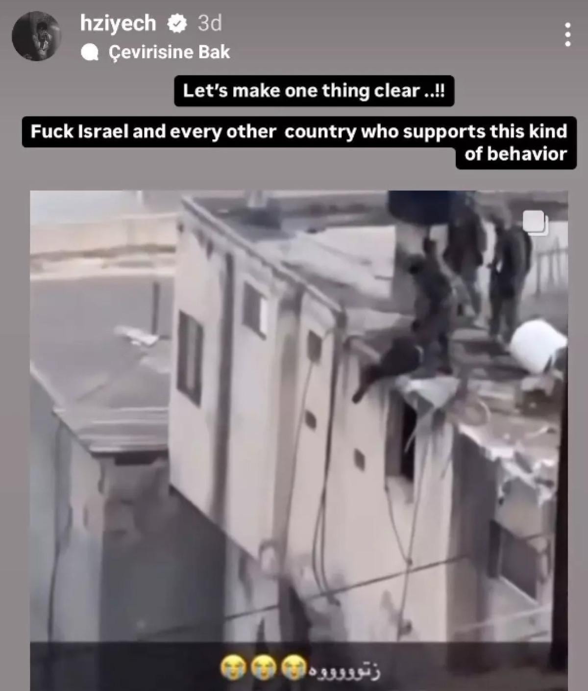 “Şunu netleştirelim. İsrail'i ve bu zalim tavırlarını destekleyen tüm ülkeleri s...! Özgür Filistin!”