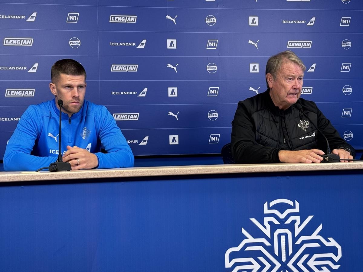 UEFA Uluslar B Ligi 4. Grup 4. maçında yarın Türkiye'yi konuk edecek İzlanda Milli Takımı'nın teknik direktörü Age Hareide, Laugardalsvöllur Stadı'nda düzenlenen basın toplantısında takımın orta saha oyuncusu Johan Berg Gudmundsson ile bir araya geldi.