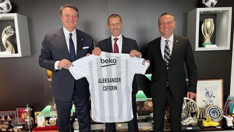 Hasan Arat, buluşmanın sonunda Aleksander Ceferin’e isminin yazılı olduğu Beşiktaş forması hediye etti.
