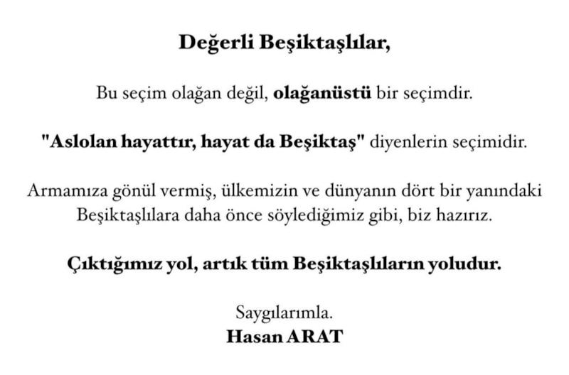 Beşiktaş camiasına seslenen Arat, şu değerlendirmede bulundu: