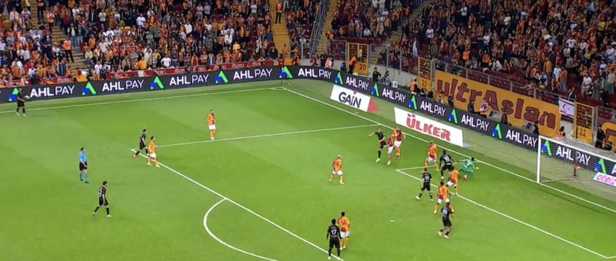 Dakikalar 58'i gösterdiğinde Hatay ekibinin sol kanattan kullandığı taç atışında Ghoulam topu ceza sahasına gönderdi, ön direkte bulunan Maksimovic'in kafa vuruşunda kaleci Fernando Muslera topu çıkardı.