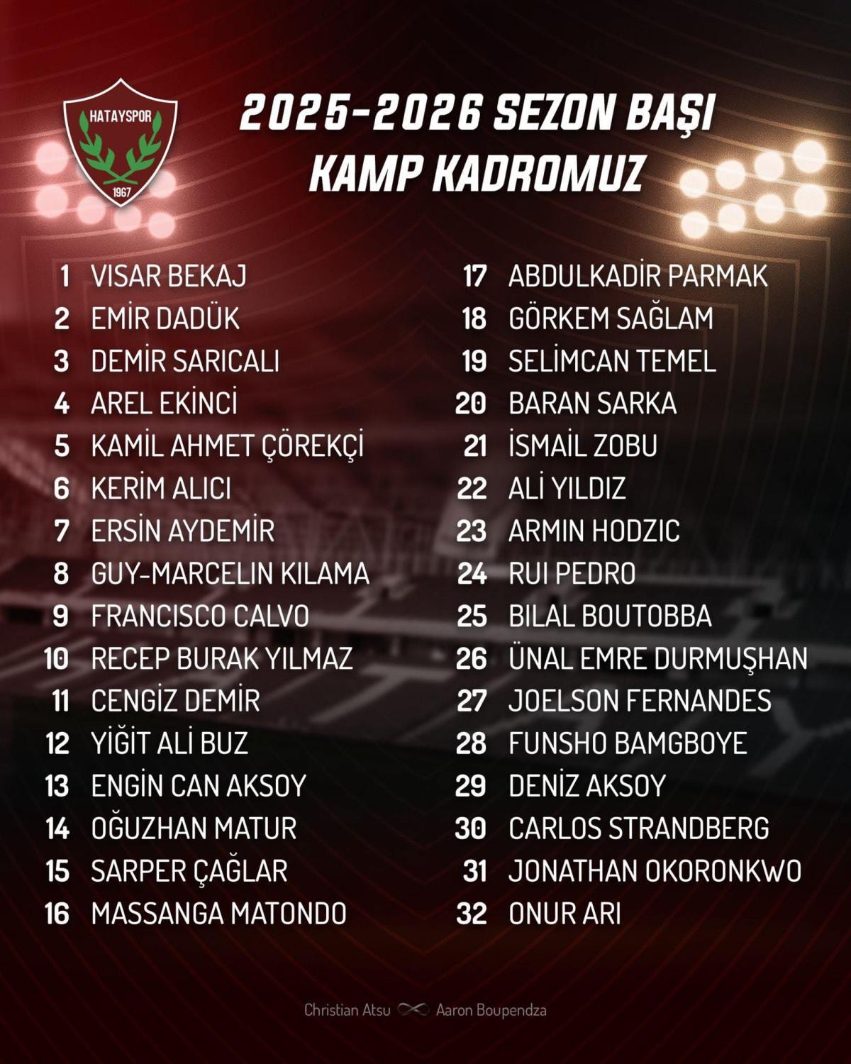 Hatayspor’un kamp kadrosunda şu isimler yer aldı: