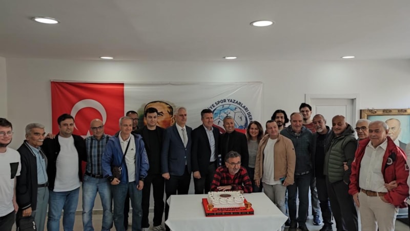 Hüseyin Eroğlu’nun açıklamalarının ardından günün anısına hatıra fotoğrafı çektirildi ve şampiyonluk pastası kesildi.