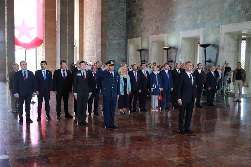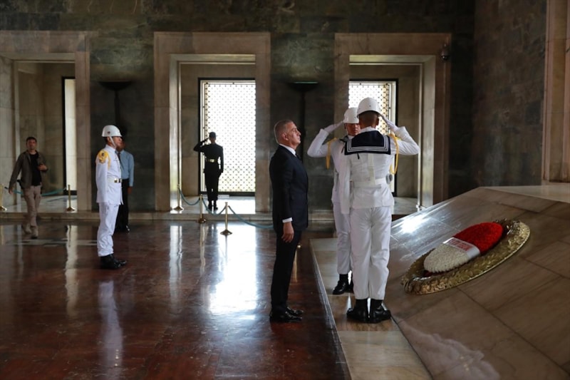 Hacıosmanoğlu'nun mozoleye çelenk bırakmasının ardından saygı duruşunda bulunuldu.