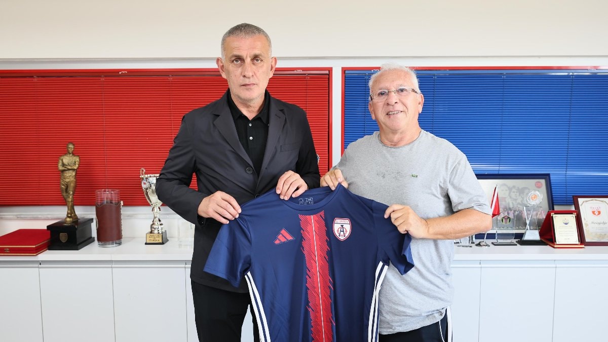 - Ziyarette Özkan, Hacıosmanoğlu'na forma hediye etti.